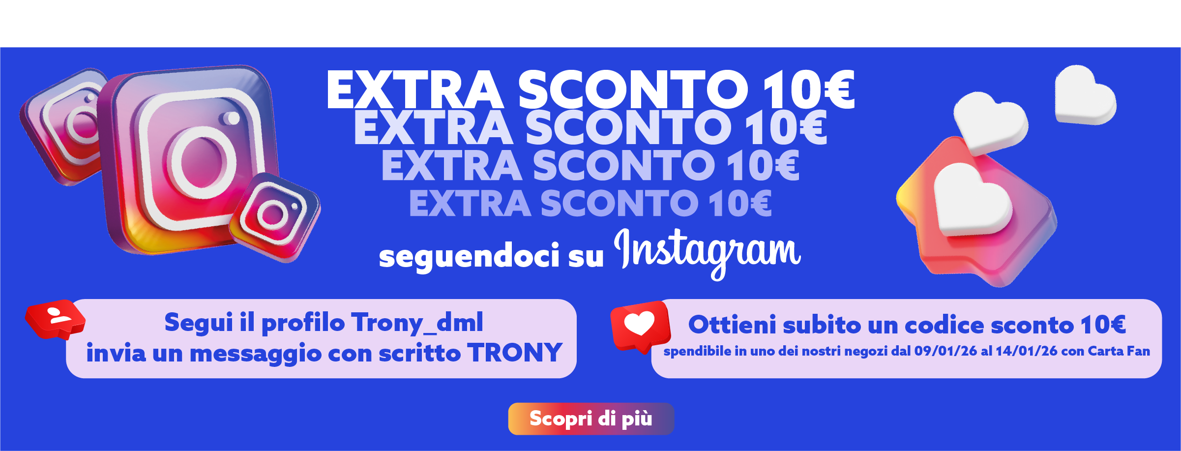 SEGUICI SU INSTAGRAM, PER TE EXTRA SCONTO 10 EURO